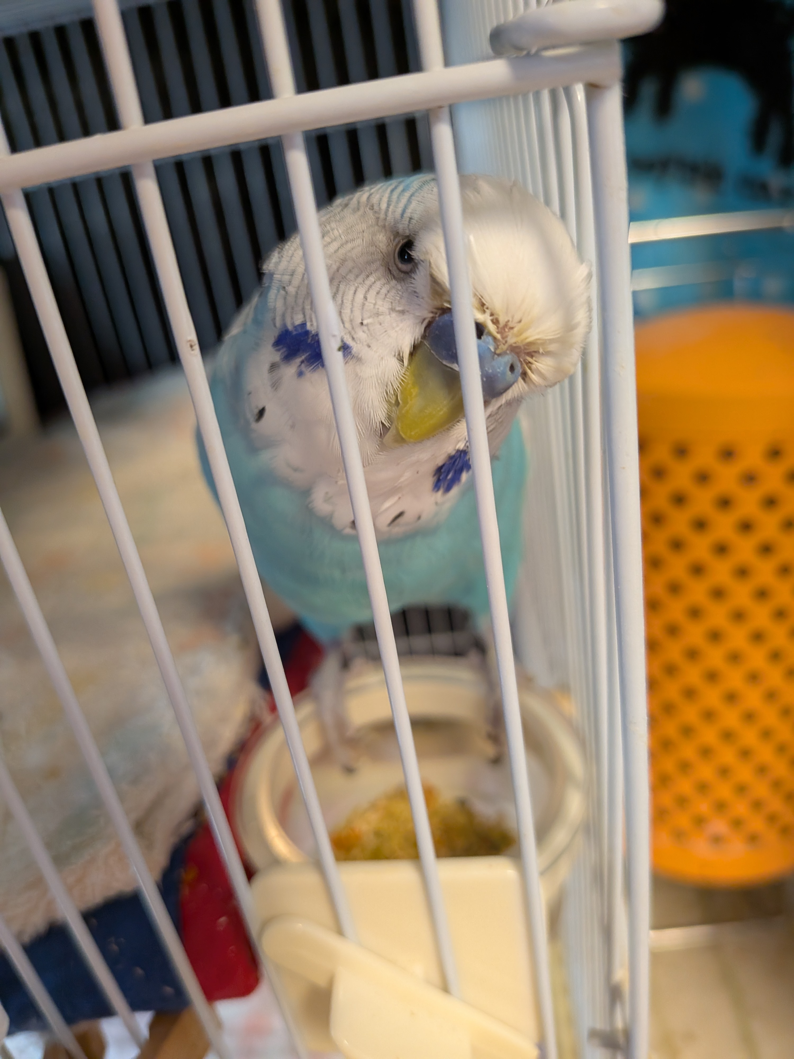 まずはジャンボセキセイインコの瑠璃ちゃん。