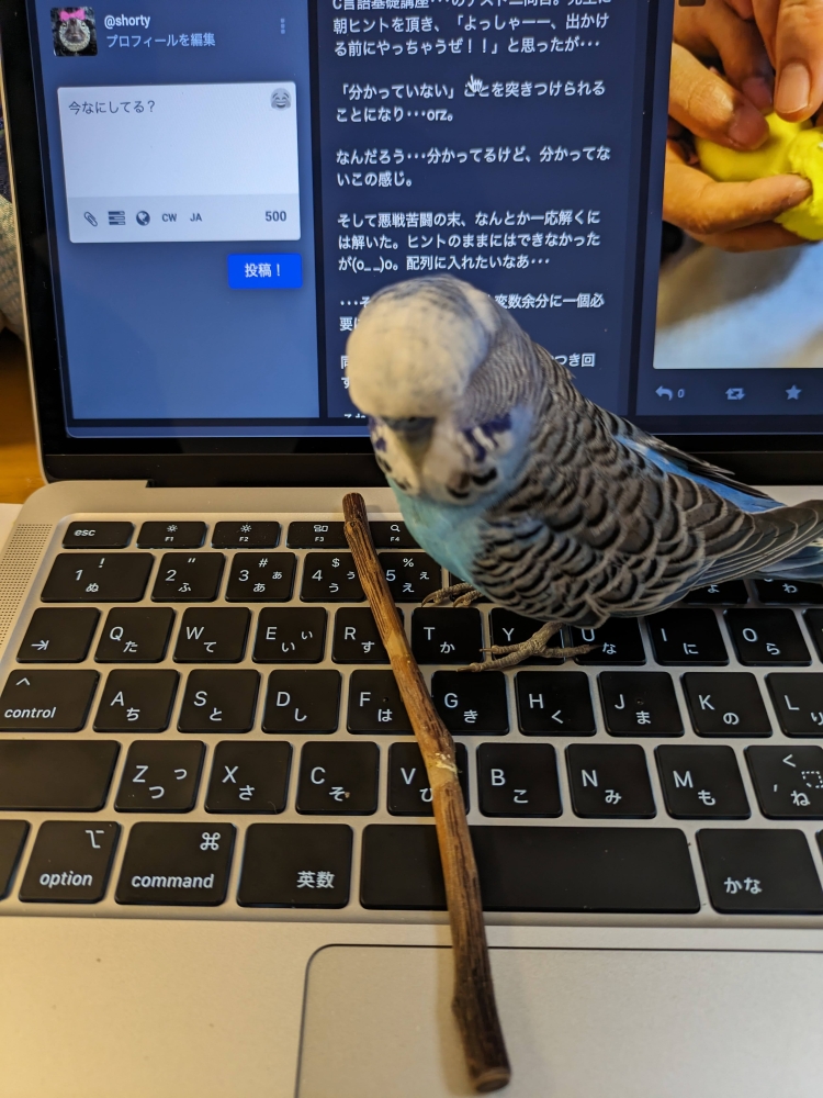 カメたちの話題がないから……というわけではありませんが、今日はインコたちのお話です。我が家はカメ4頭に加え、インコ4羽も一緒に暮らしています。カメたちは基本音を発しませんが、インコたちはとても賑やかです。